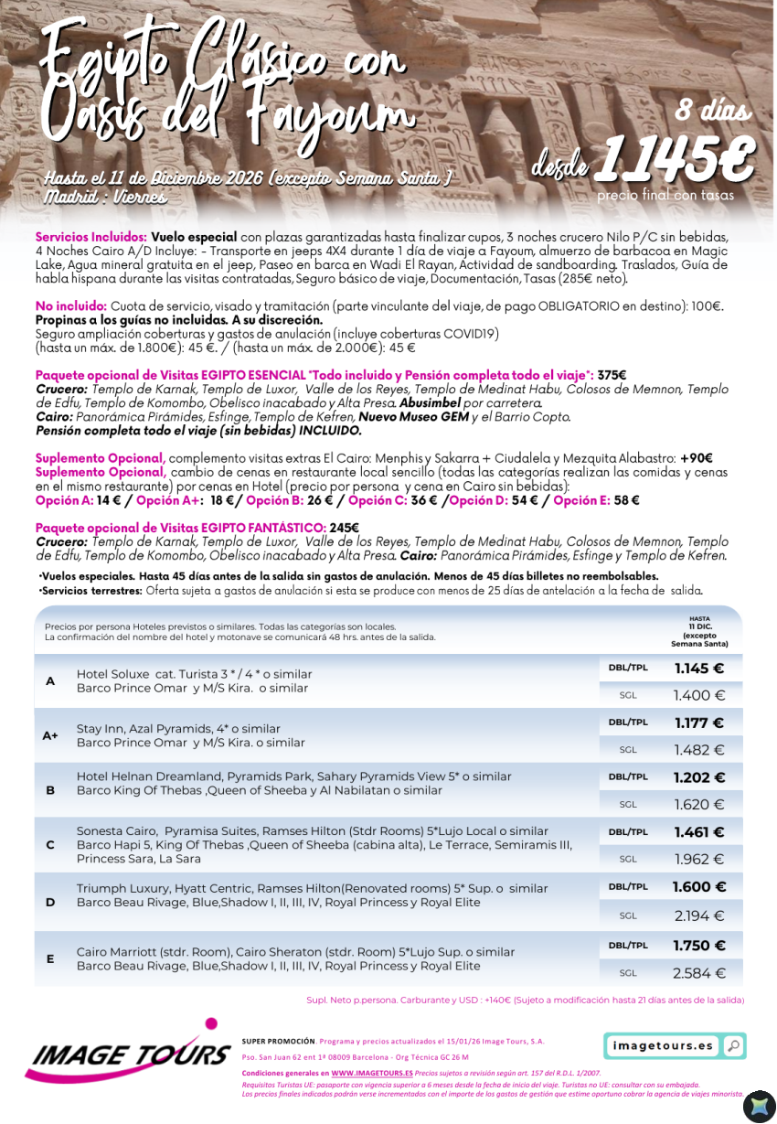 Egipto Clásico con Oasis del Fayoum, 8 días de viaje inolvidables y con aventura, desde 1.145€